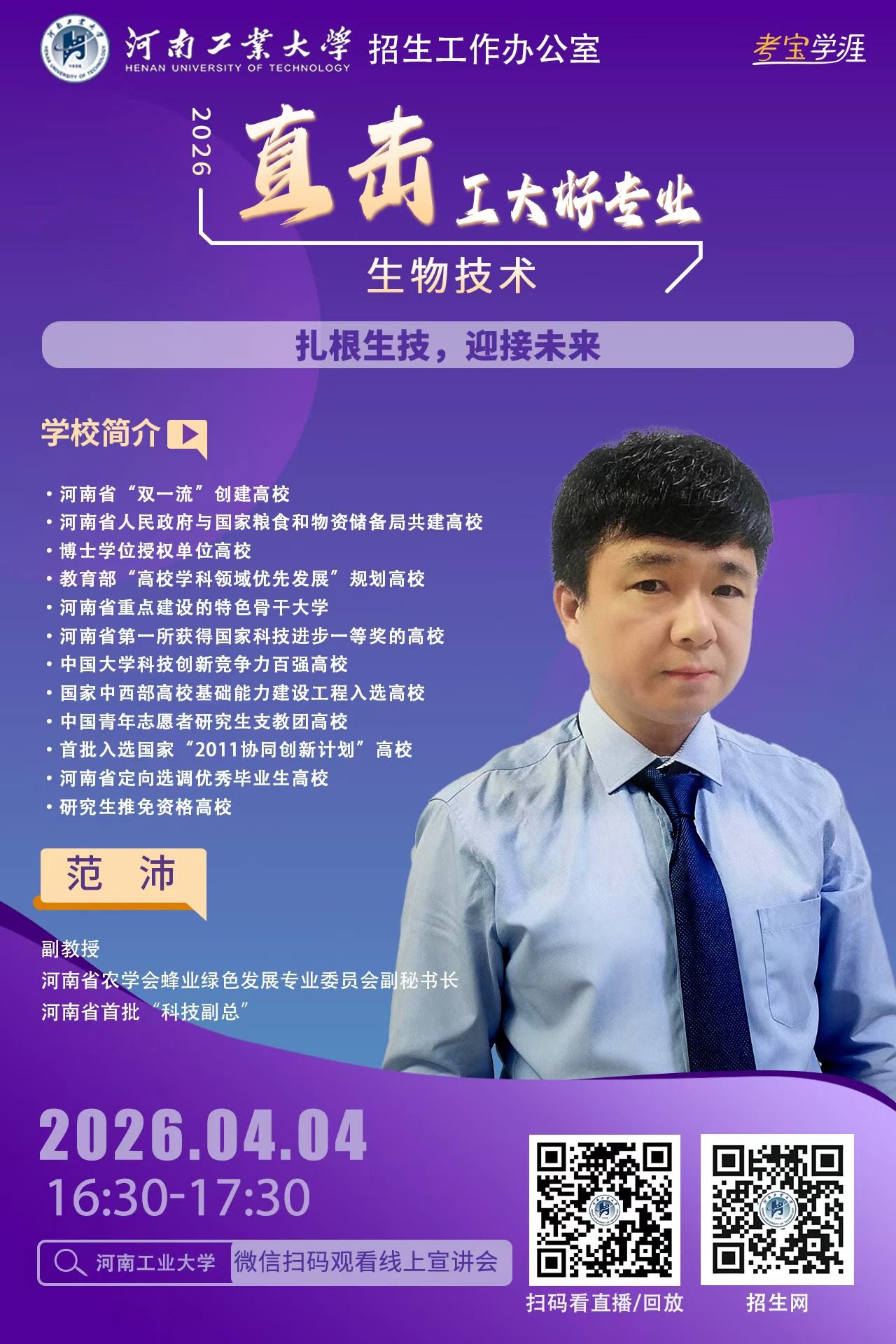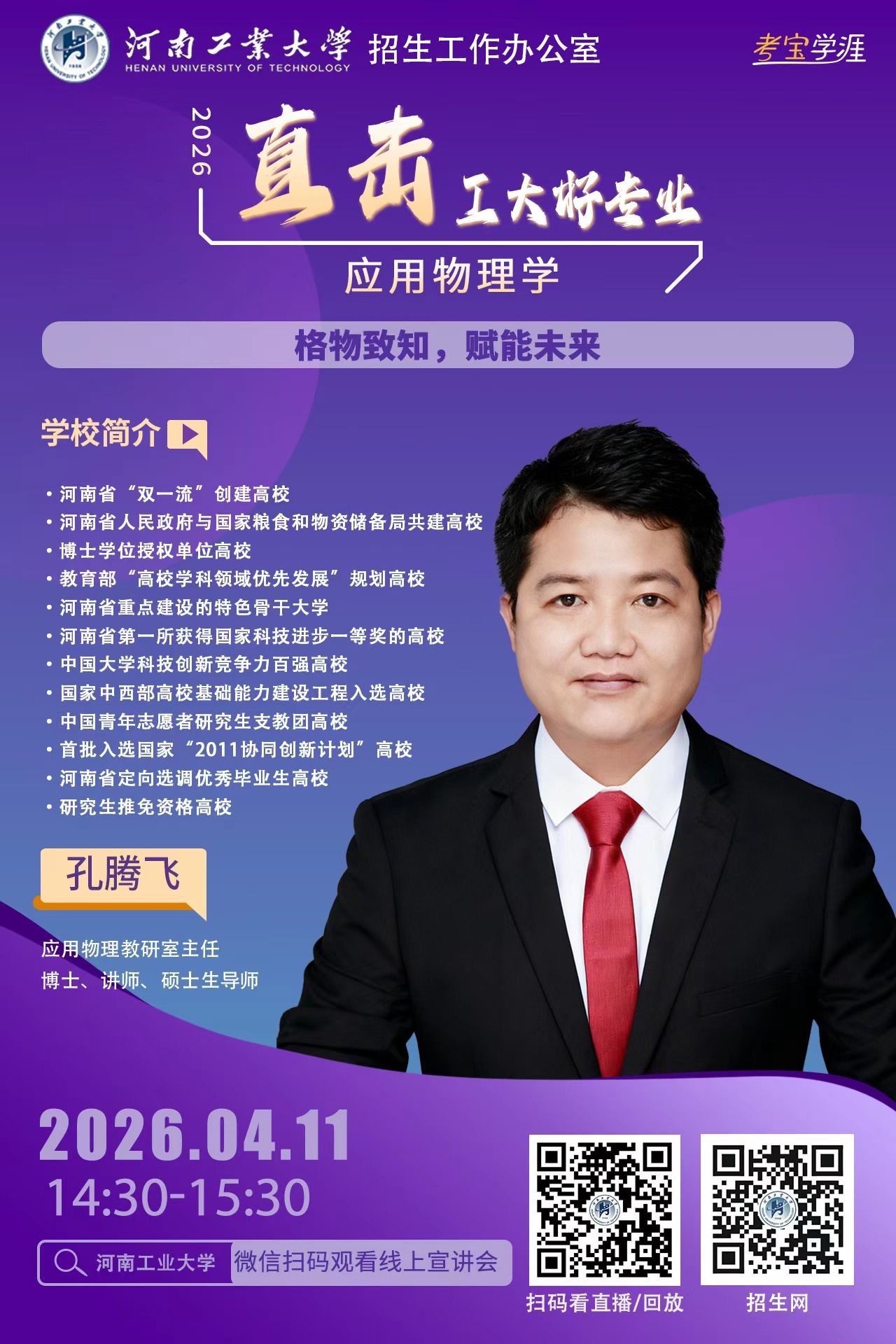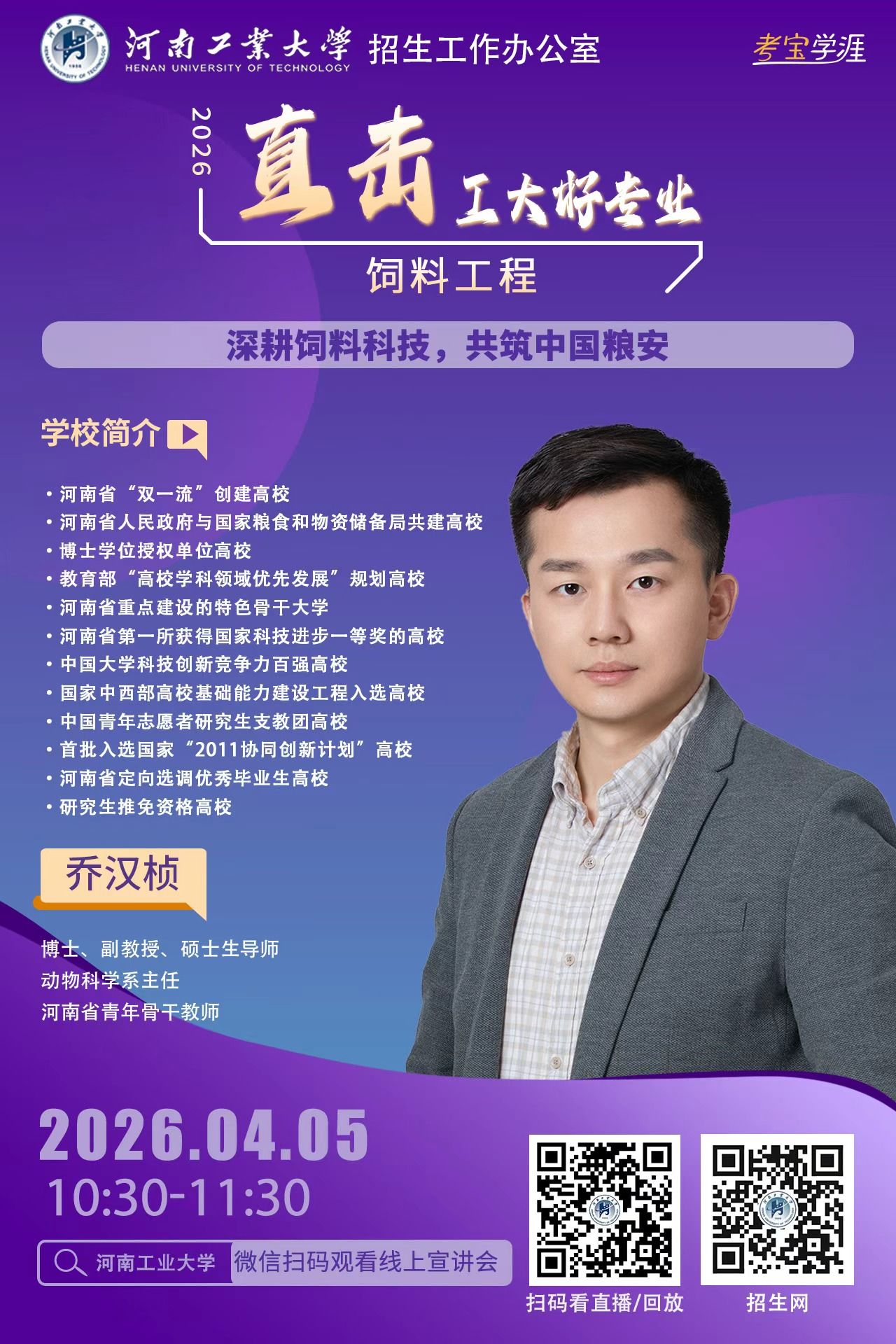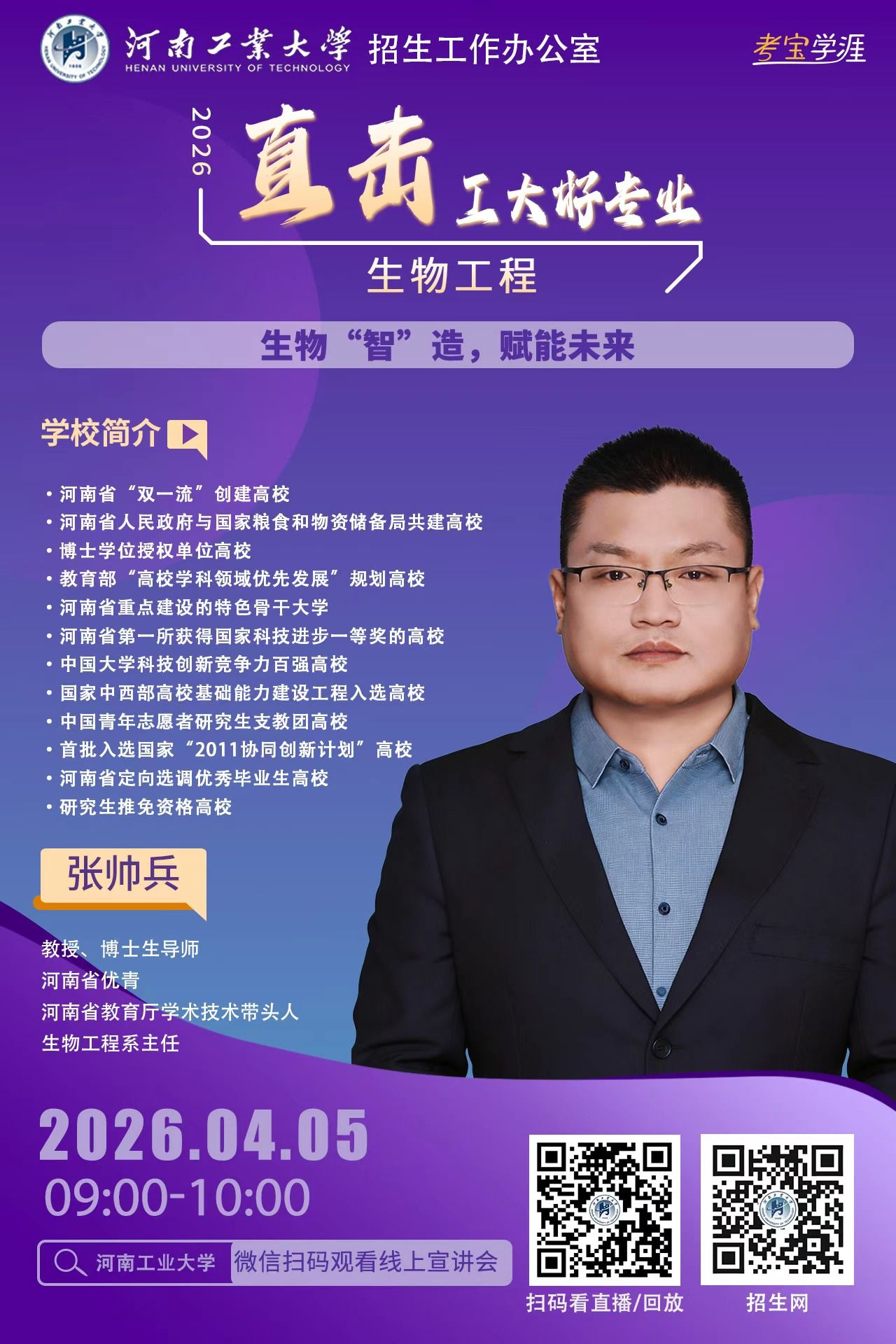 高考的脚步越来越近,面对琳琅满目的专业目录,你是否还在为“这个专业学什么?”“毕业之后能做什么?”“我家孩子适不适合?”而迷茫,别焦虑。河南工业大学2026年高招第二轮招生宣讲“专家说——直击工大好专业” 启动了!从3月21日到6月21日,我们将利用每个周末的黄金时间,为您带来一场场干货满满的专业盛宴。