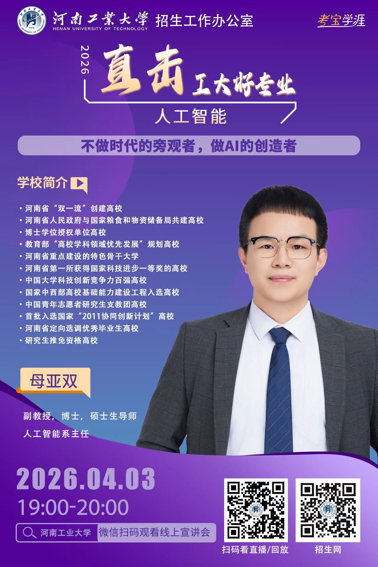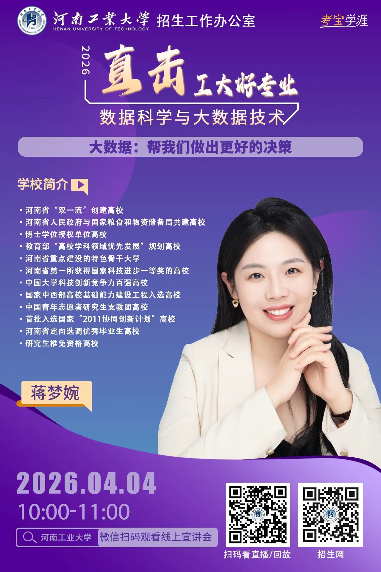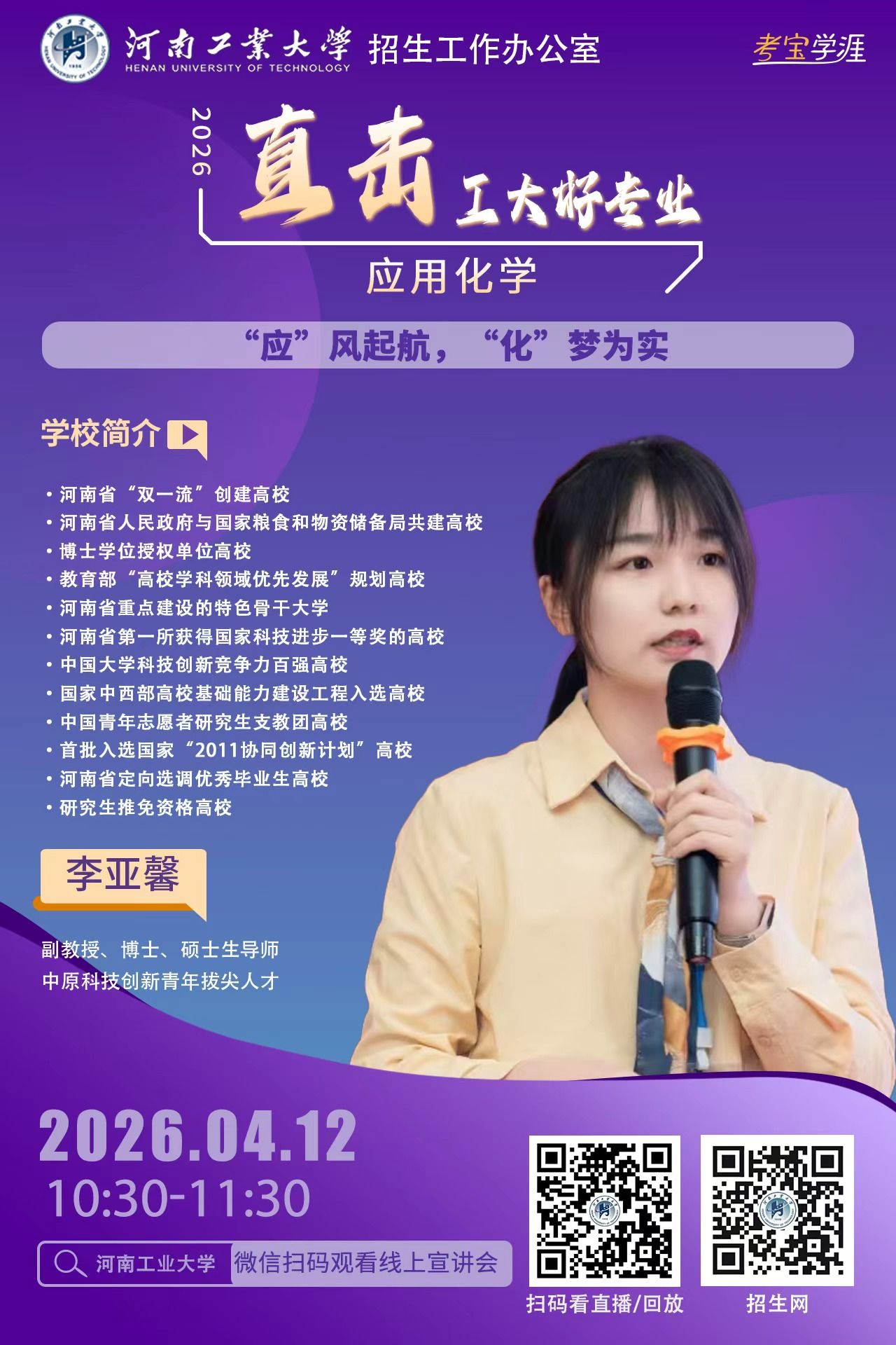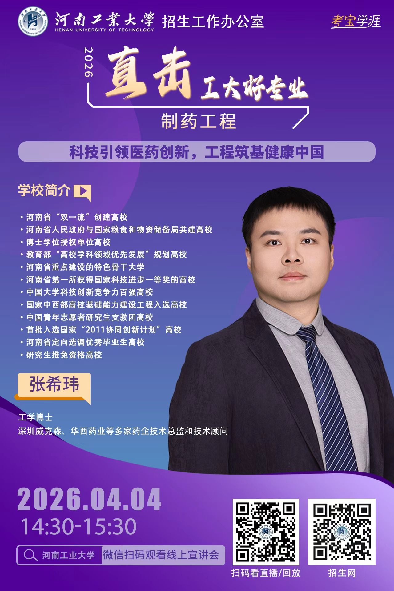 高考的脚步越来越近,面对琳琅满目的专业目录,你是否还在为“这个专业学什么?”“毕业之后能做什么?”“我家孩子适不适合?”而迷茫,别焦虑。河南工业大学2026年高招第二轮招生宣讲“专家说——直击工大好专业” 启动了!从3月21日到6月21日,我们将利用每个周末的黄金时间,为您带来一场场干货满满的专业盛宴。